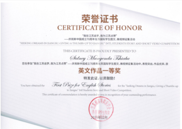 江苏科技大学积极鼓励留学生参加创新创业竞赛、社会活动、校内外文体活动和比赛,广泛开展校外交流和展示,获得一系列奖项与荣誉。留学生参加第五届中国“互联网+”大学生创新创业大赛国际赛道获铜奖一项、全国大学生船舶能源与动力创新大赛获优秀奖一项、国家外专局跨文化交际大赛获三等奖一项、江苏省来华留学生征文大赛一等奖一项……
