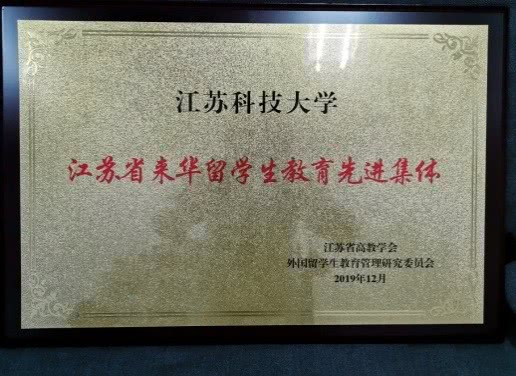 2016年,江苏科技大学入选“留学江苏目标学校”,2018、2019连续被评为江苏省来华留学教育先进集体,4名留学生管理工作人员先后被评为留学生教育先进个人和优秀辅导员。