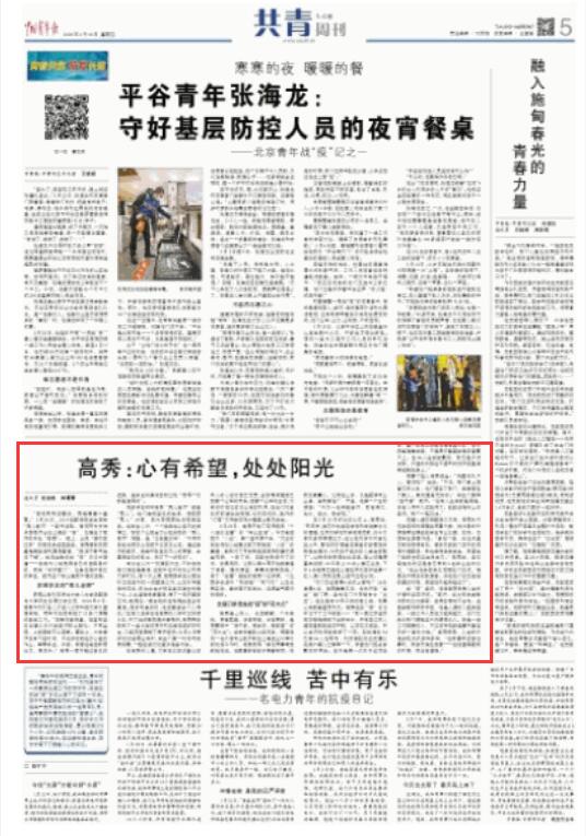 战“疫”经历,促使高秀思考人生的价值和实现方式。“或许,这次任务会影响我的论文撰写、会导致考核不合格、甚至会影响职称评定,但是入境的人越来越多,一线工作人员压力越来越大,他们已经为我们撑起这片天撑得太久。我是一线工作需要的人,不应该待在舒适圈守着自己的一亩三分地。”高秀觉得,人生的价值实现方式多种多样,“在我暮年回首往事时,我会无悔且自豪——在祖国需要我的时候,我没有退缩。”