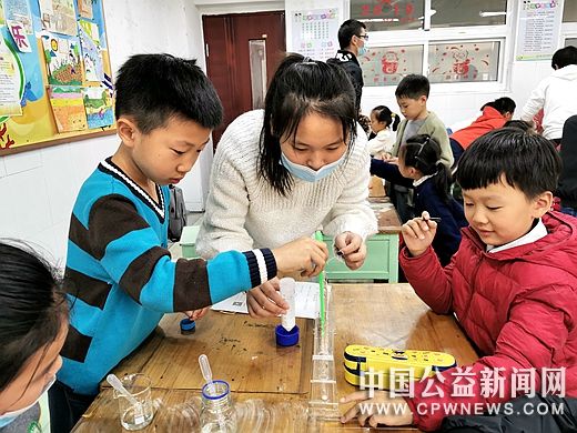 11月5日下午,江苏科技大学生物技术学院本科生党支部组织部分党员志愿者走进镇江市中山路小学二(7)班,采用PPT讲解、互动答题、科普实验等教学方法给孩子们上了一堂丰富而精彩的生化知识科普实验课,进一步增进了孩子们热爱科学和了解探索生化知识的兴趣。(通讯员:邹金城 晏然 徐炼炼)