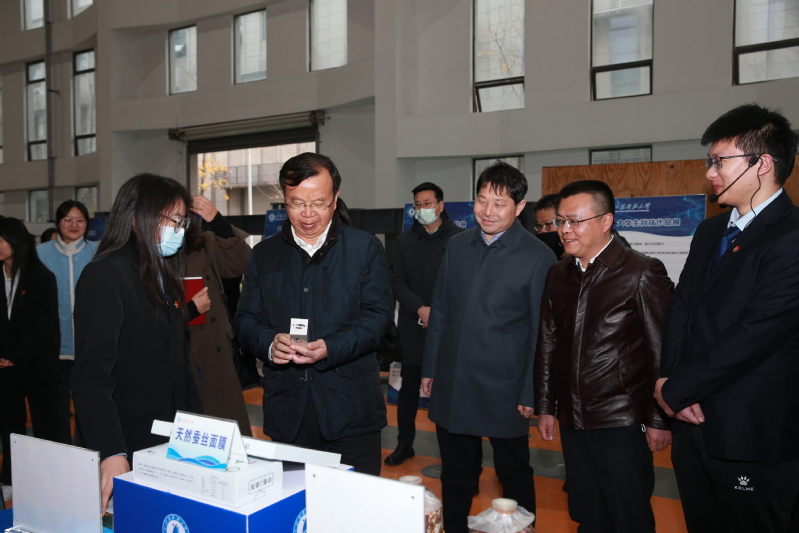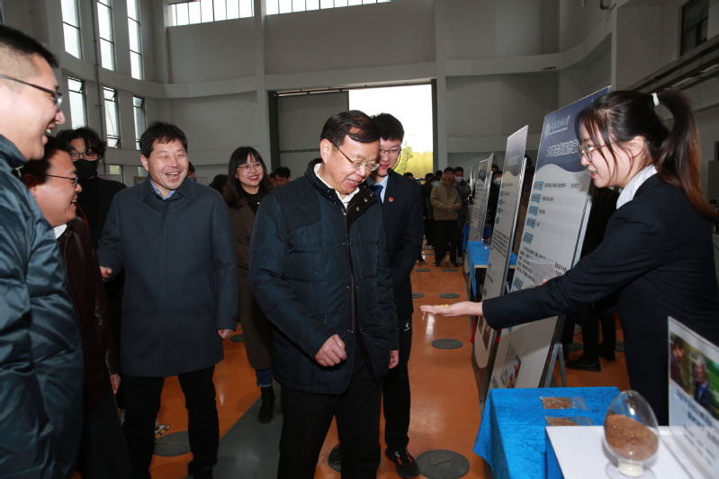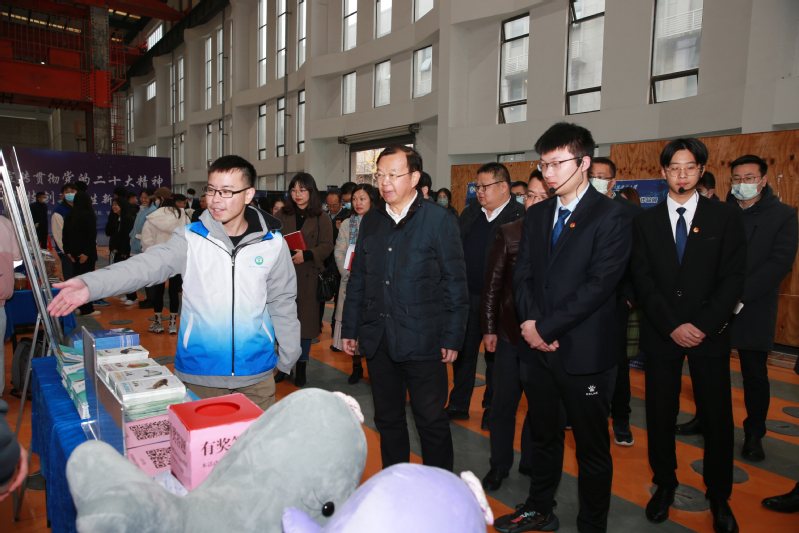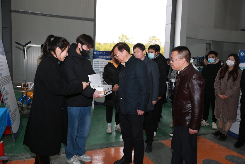 校长周南平到每个展位都认真耐心听同学们对作品的功能、创新点、应用场景等全方面的介绍,围绕作品的特点、改进提升、未来应用等方面与同学们深入交流探讨并给予了具体的指导意见。周南平充分肯定了同学们的创新精神与实践能力,并就如何进一步提升大学生实践创新能力提出了几点期望和要求:一是期望同学们按照习近平总书记在党的二十大报告中的要求,积极投身科学研究,通过自己的不断努力,在实践中感悟科研创造的趣味性和成就感;二是期望同学们积极参加各类创新创业竞赛,在竞赛中检验自己的研究水平,在竞赛中通过学习其他优秀项目不断提升自己项目的质量,在竞赛中提升学以致用的能力和对科学知识的理解;三是要求学校各职能部门要协同创新,特别是团委、教务处、学生处、创新创业学院、研工部等人才培养的一线部门更要通力协作,激发学生的科技创新潜能,培养学生实践创新能力,提升学生科学素养,促进学生创新创业能力的全面提升,为中国式现代化建设贡献青春力量。