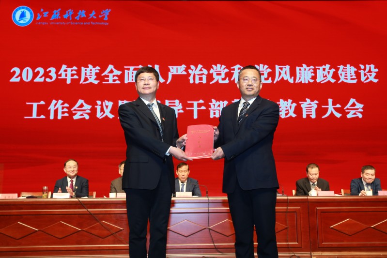 会上举行了2023年度全面从严治党和党风廉政建设主体责任责任书和“一岗双责”责任书递交仪式,二级党组织代表、学院院长和部门负责人代表分别向校党委书记葛世伦、校长周南平以及分管校领导递交了责任书。