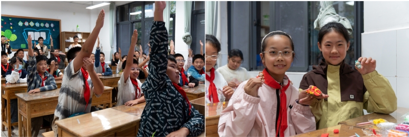 粮食节约,人人有责,江苏科技大学学子积极用行动宣传节约粮食精神,凝练“食育科普”系列微课,深入小学与社区,打造实践育人课堂。在镇江市实验小学官塘分校,志愿者团队开展“食育种子”计划:通过“一粥一饭,来之不易”“世界各国代表性美食”等动画短片,生动讲解粮食从田间种植到餐桌食用的全过程;组织粘土创意实践活动等趣味游戏,孩子们化身“小小美食家”,在志愿者的指导下,用五彩粘土捏制米饭、面条、蔬菜、面包等各类食物。用童趣作品传递节约理念,将粮食安全的种子播撒进少年儿童心中。
