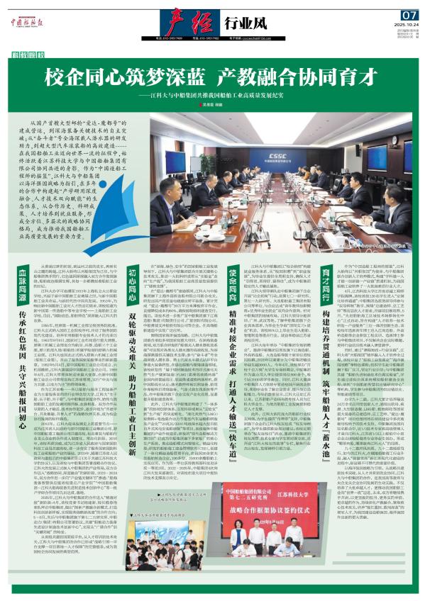 以海洋强国战略为引领,从战略共建到技术突破,从人才共育到就业协同,江科大与中船集团的合作,是我国高等教育与央企龙头企业协同发展的生动实践,不仅培养了大批卓越人才,更推动我国船舶工业向“世界一流”迈进。未来,双方将继续携手并肩,以更坚毅的担当、更务实的举措、更卓越的作为,持续深化产教融合,聚焦核心技术攻关,培养“能扛重担、敢闯深蓝”的领军人才,为我国建设造船强国、海洋强国作出新的更大贡献。(吴秀霞 程鹏)