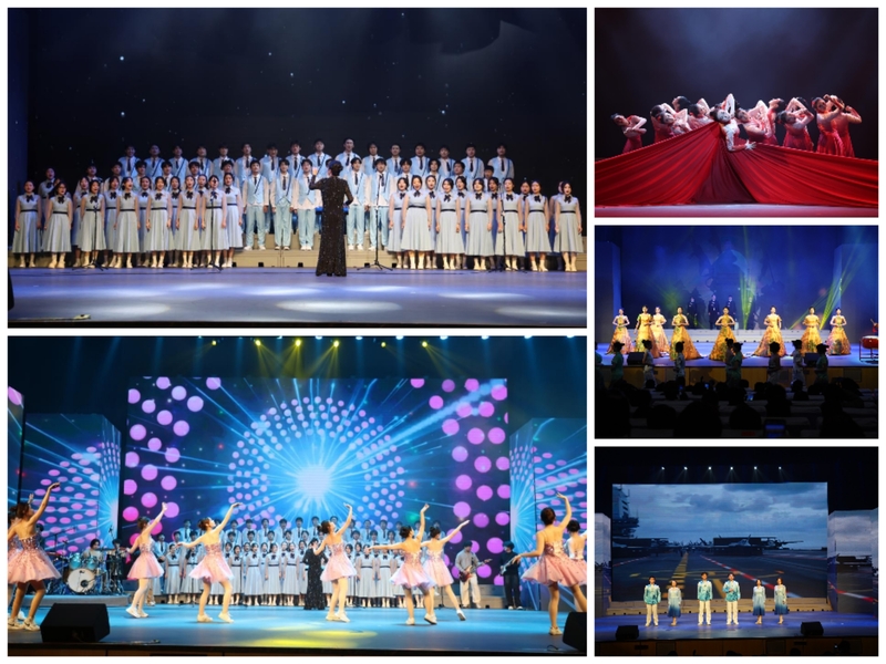 第一篇章“风起·时代开卷”中,环境与化学工程学院舞蹈《一条大河》,以舒展的舞姿勾勒出山河壮阔的美丽图景;理学院、机械工程学院、能源与动力学院联合演绎的表演唱串烧《岁月赠我以歌》,用经典旋律传递美好与暖意;海洋学院音诗画《梧桐叶上的年轮》,以诗意表达诠释和平的珍贵与青年的使命担当;经济管理学院合唱《追寻》,用饱满的情感唱出青年学子对热爱的坚守和对理想的追求。