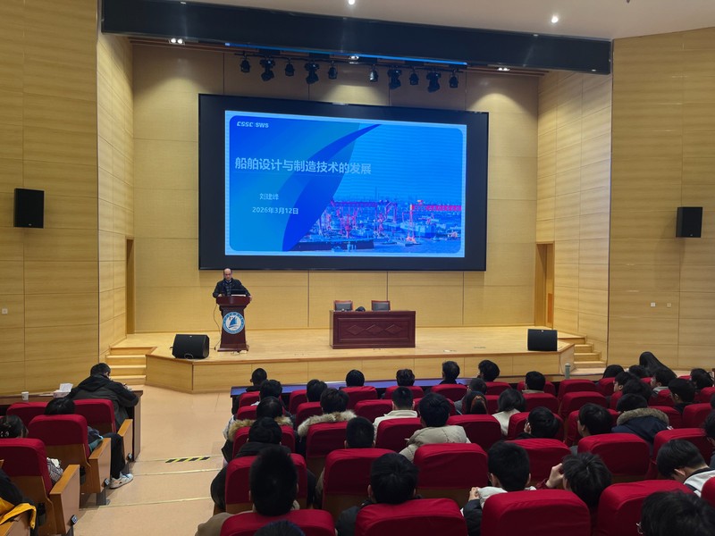 为深化产教融合,推动行业前沿技术与本科课堂教学深度融合,让本科生在校就能接轨行业发展实际、树立专业前沿视野,3月12日,船舶与海洋工程学院特邀中船集团上海外高桥造船有限公司刘建峰总工艺师走进本科课堂,以《船舶设计与制造技术的发展》为主题,为学院本科生带来了一堂兼具理论高度与实践价值的专业前沿课,同时与专业课教师共探船舶专业本科教学与行业需求的精准对接路径。