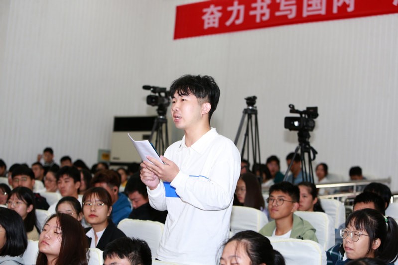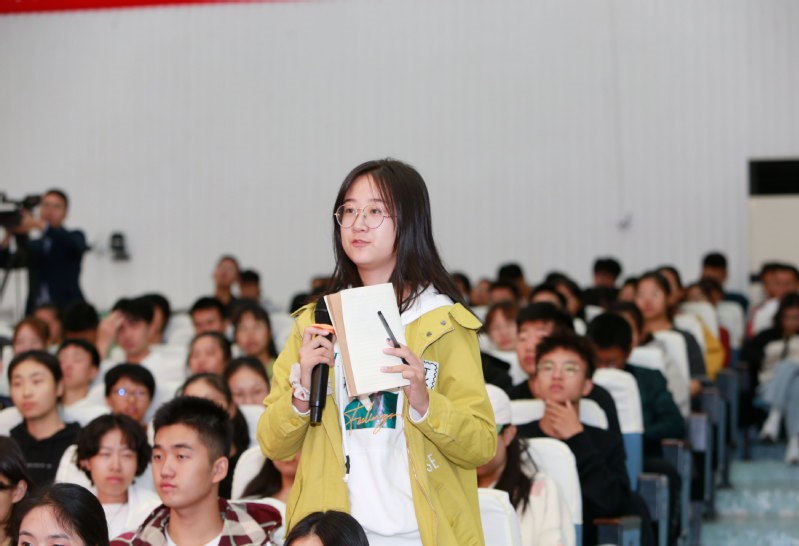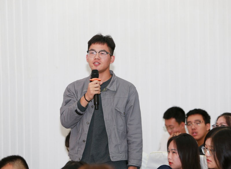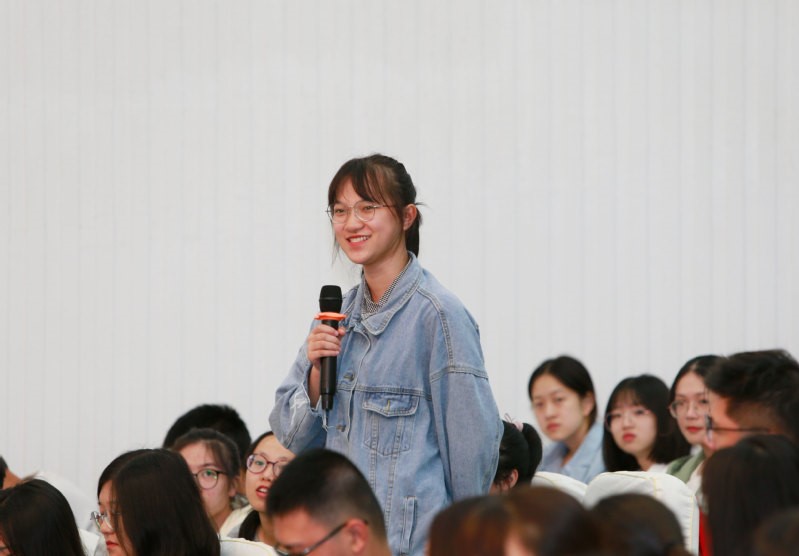 互动环节,食品科学与工程类二班班长张璟琪同学、外国语言文学类宋菲同学、体育类龚鑫同学、深蓝学院学生会负责人李琦同学等踊跃提问,围绕进入大学后的学业规划、专业发展等方面提出了富有见地的思考,葛书记用坚定温和的语气耐心地为同学们解疑释惑、指点迷津,充分体现了葛书记作为学者与长者的深厚学术涵养和对江科大新学子的深切厚望。