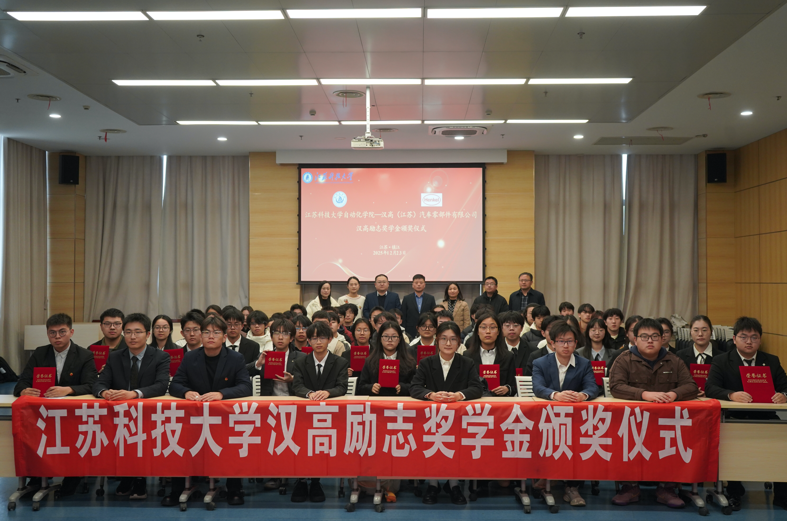 典礼伊始,郭峰代表自动化学院对汉高集团领导嘉宾的到来致以诚挚的欢迎,对汉高集团关心我校学生的成长与发展表达衷心的感谢。随后,陈迅宣读了《江苏科技大学汉高励志奖学金表彰决定》,授予张迪等 17 名学生及 “磁极双擎 ——无缆管道智巡机器人” 团队 2025 年度汉高励志奖学金。