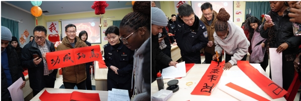 2月10日,正值中国农历小年,我校长山校区年味正浓。海外教育学院为在校留学生精心策划的以“我在中国过春节”为主题的文化体验活动温馨启幕。校领导任南、李木旺,镇江市出入境管理支队、丹徒司法局、丹徒区政协民进、丹徒长山派出所,海外教育学院朱向华书记及教师共同出席活动,与来自世界各地的留学生代表欢聚一堂,共贺中国马年春节。