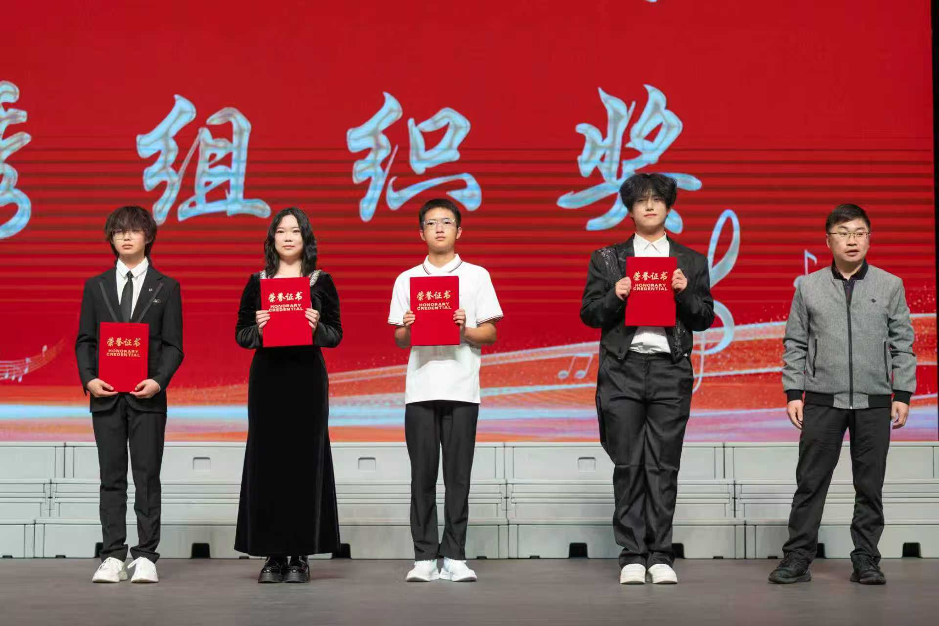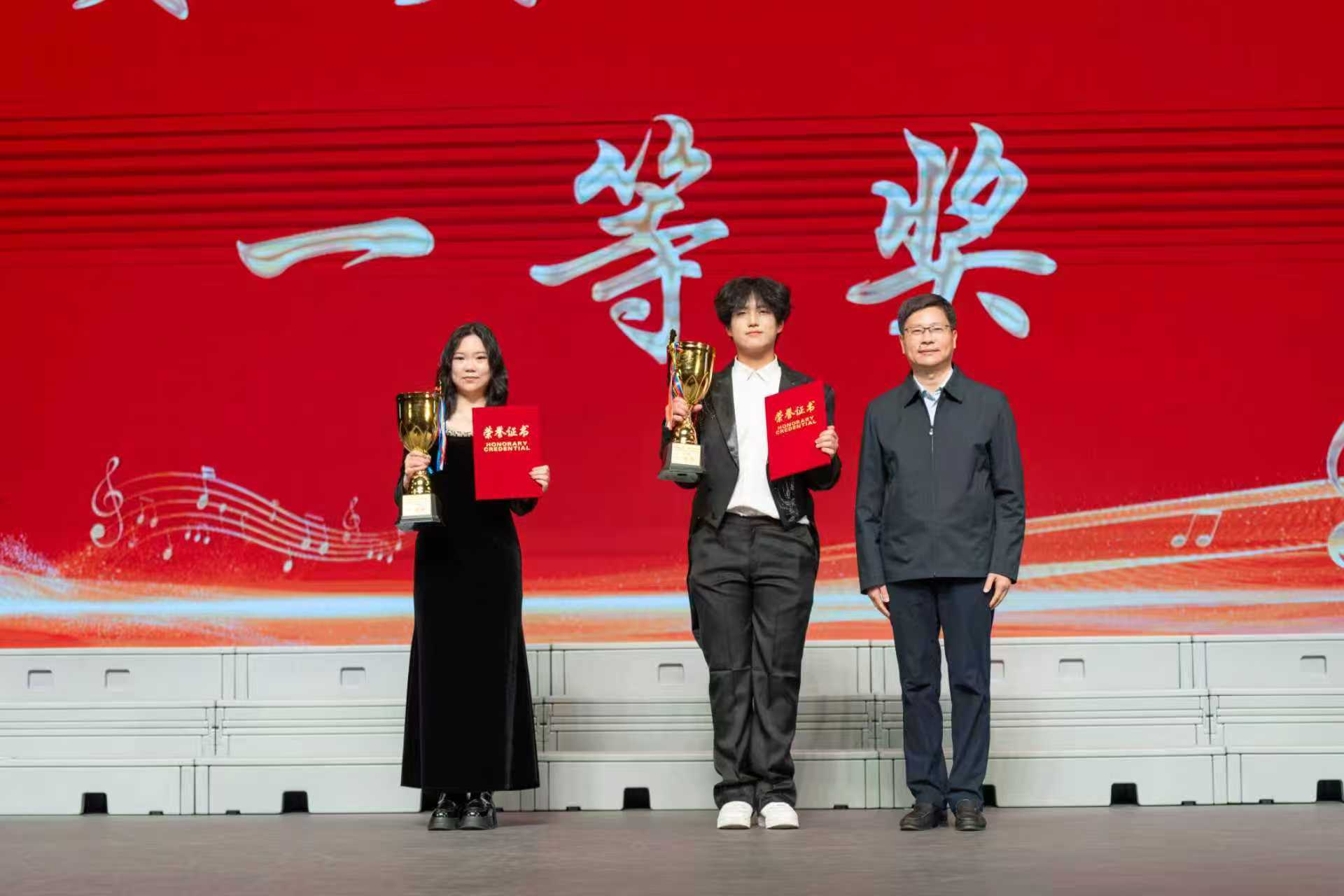 经过激烈角逐,评委团结合现场表现给出最终评分:理学院荣获小合唱组一等奖,机械学院、经管学院获二等奖,粮食学院、能动学院、材料学院获三等奖;经管学院荣获大合唱组一等奖,材料学院、机械学院获二等奖,理学院、自动化学院、人文学院获三等奖。机械学院、经管学院、材料学院、理学院荣获“优秀组织奖”。出席领导为获奖队伍颁发证书和奖杯。