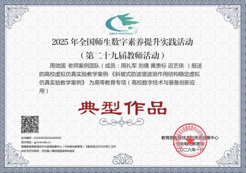 近日,在2025年教育部全国师生数字素养提升实践活动(第二十九届教师活动)高等教育专项评选中,我校船舶与海洋工程学院报送的2项高校虚拟仿真实验教学案例脱颖而出,均获评典型作品。