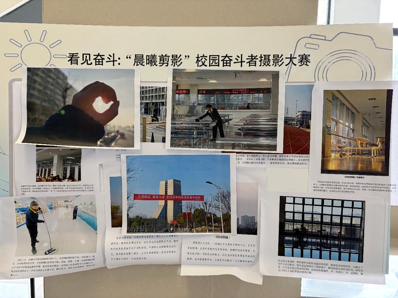 镜头为笔,记录晨曦中的奋斗群像。同学们用镜头捕捉清晨6点至8点校园里的动人瞬间:食堂师傅备餐的专注、教学楼里保洁人员清扫的身影、图书馆清晨里的第一缕微光、操场上晨跑的脚步……每一张照片配以百字微故事,讲述平凡岗位以及日常易见的奋斗精神。部分作品在活动周期间还通过线下形式进行展示,引导更多的同学用眼睛发现光,在潜移默化中唤醒大家珍惜时光、勤奋向学的初心。有学生在驻足观展后表示,平时匆匆经过的清晨场景被镜头定格后,才意识到身边有这么多默默付出的人。