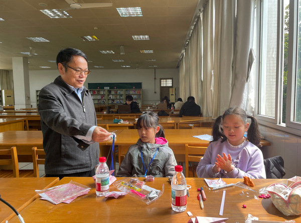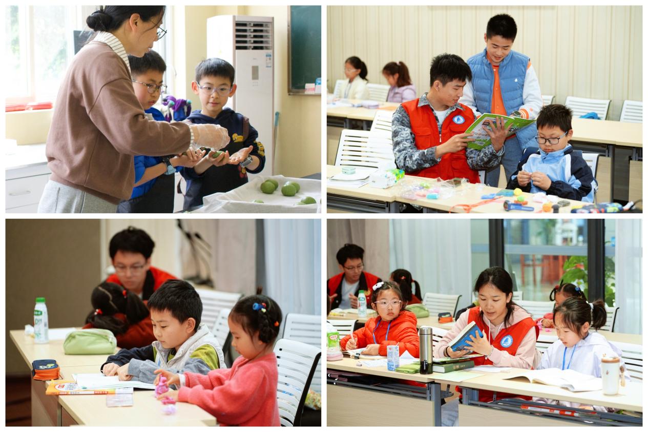 在长山校区,志愿者准备了折纸、剪纸、黏土等有趣的手工材料,手把手指导孩子们创作。赵书贤小朋友骄傲地展示手工作品,他说:“我做了好多黏土作品,很开心,下次还想来。”托管班同步开展学业指导,让孩子们养成良好的学习习惯。机械学院志愿者马家福擅长理科且有家教经验,看到志愿者招募信息后第一时间报名,耐心为李伊暄小朋友讲解数学题。土木工程与建筑学院王丽艳老师的女儿钱思含说:“有哥哥姐姐的帮助,我已经写完作业了,等妈妈下课带我去食堂吃饭,我觉得江科大的食堂挺好吃。”孩子们纯真的话语是对这份温暖陪伴的最好见证。