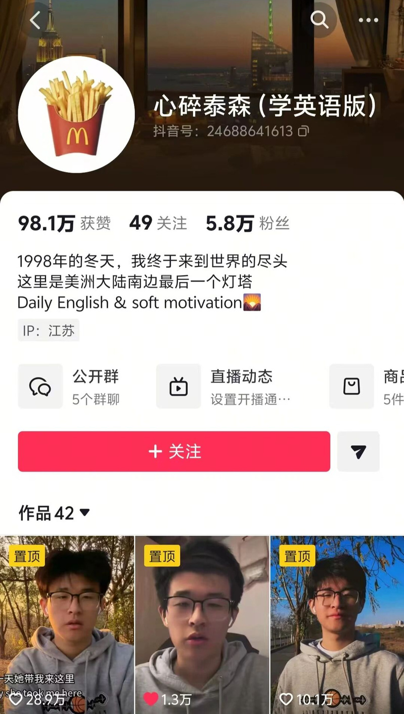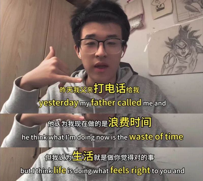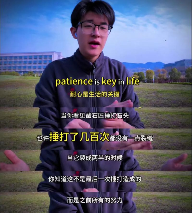 但他没有放弃。他换了一个方向:做“露脸”的英语口播视频。他的逻辑很简单——虚度青春、毕业了没有方向,比被熟人看到自己的视频更狼狈。
